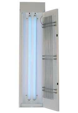The RG-1002 Insect Electrocutor is designed for wall or corner mount positions inside buildings with flying insect problems. The angled rear design of the RG-1002 allows the light trap to fit into tight corner locations. When vertically mounted 1-2 feet above the floor, the 48" U.V. Insect Light shines just above the floor area where flying insects are most active. - White powder-coated steel construction.